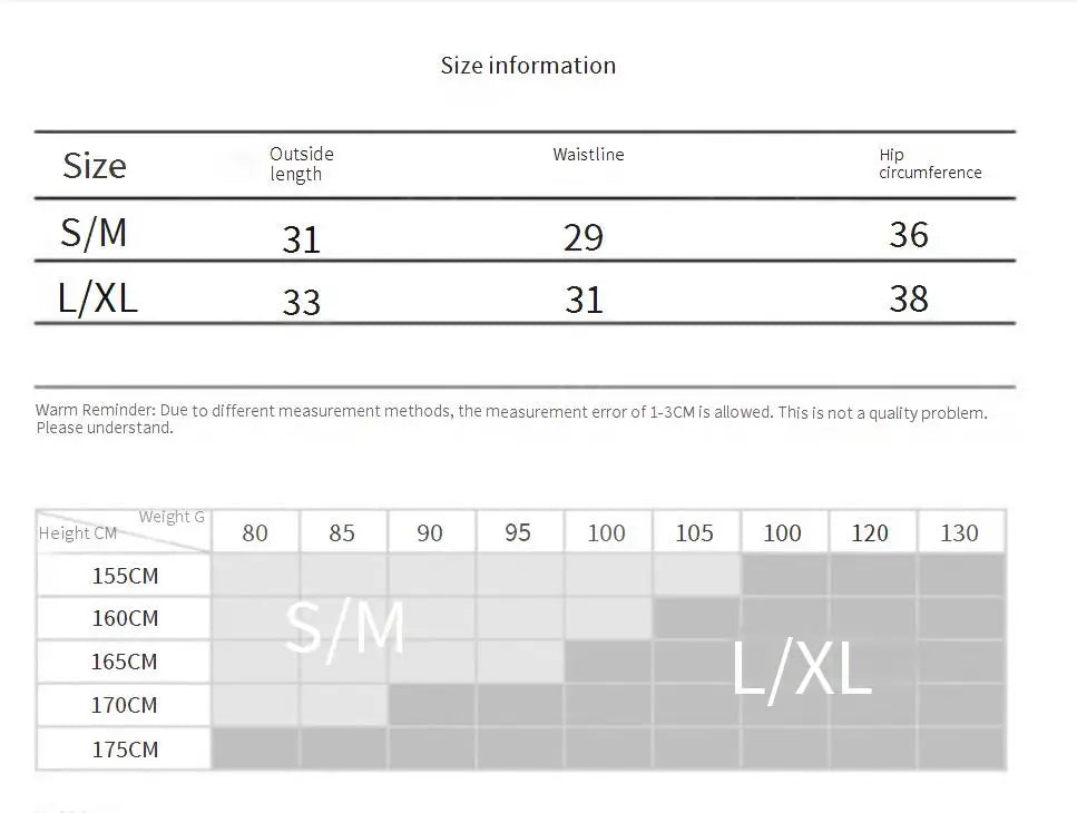 3.Due to the personal measurement technique is different and the elastic fabric of material/There maybe 1 inch error of the physical,Please choose the size accordingly.