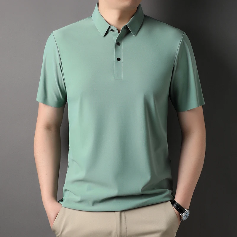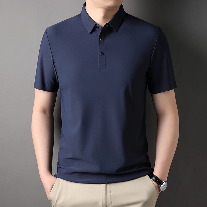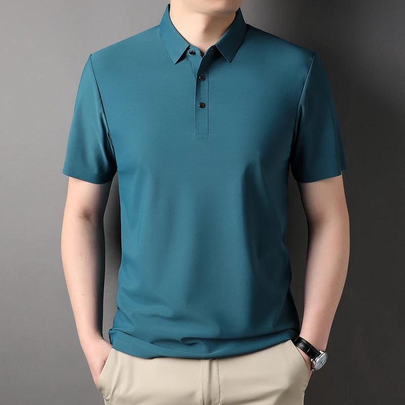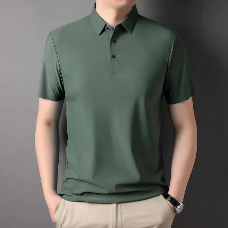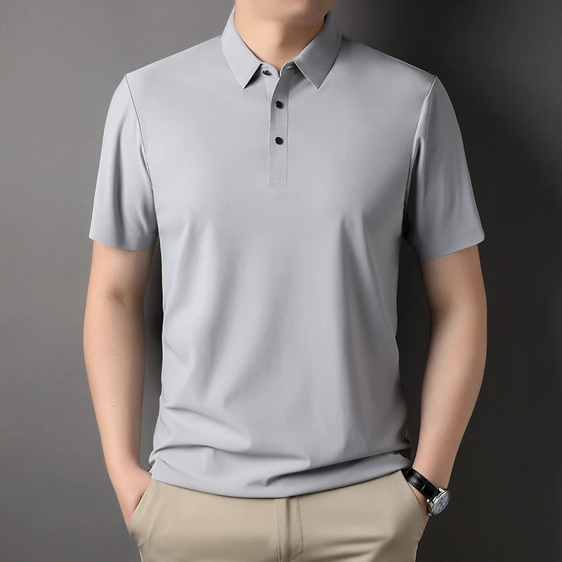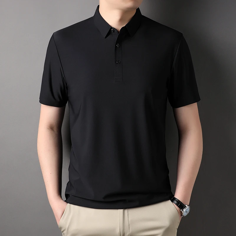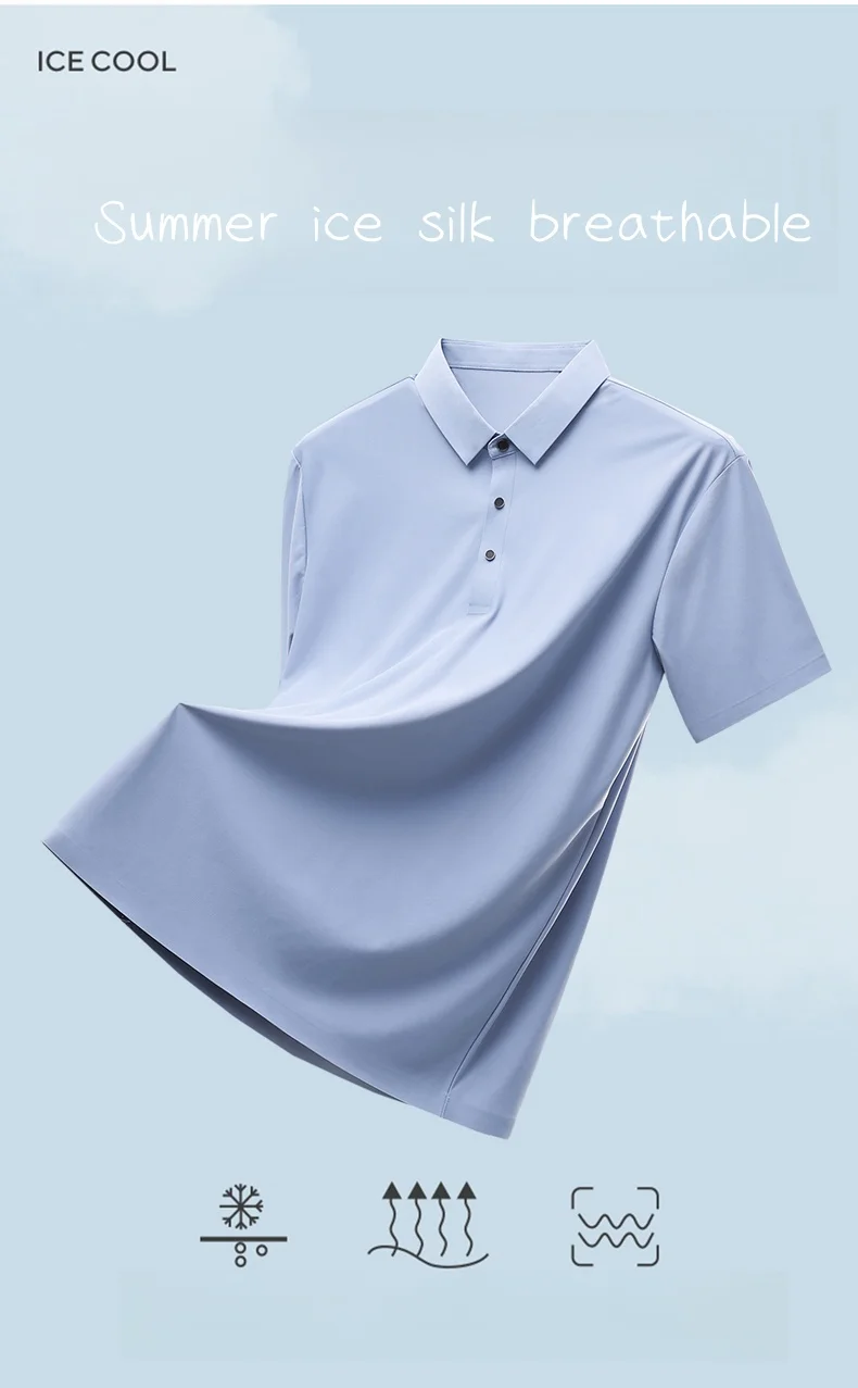 High end fashionable men's short sleeved summer new ice silk comfortable breathable polo shirt, high-quality casual T-shirt top