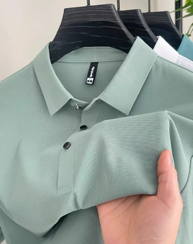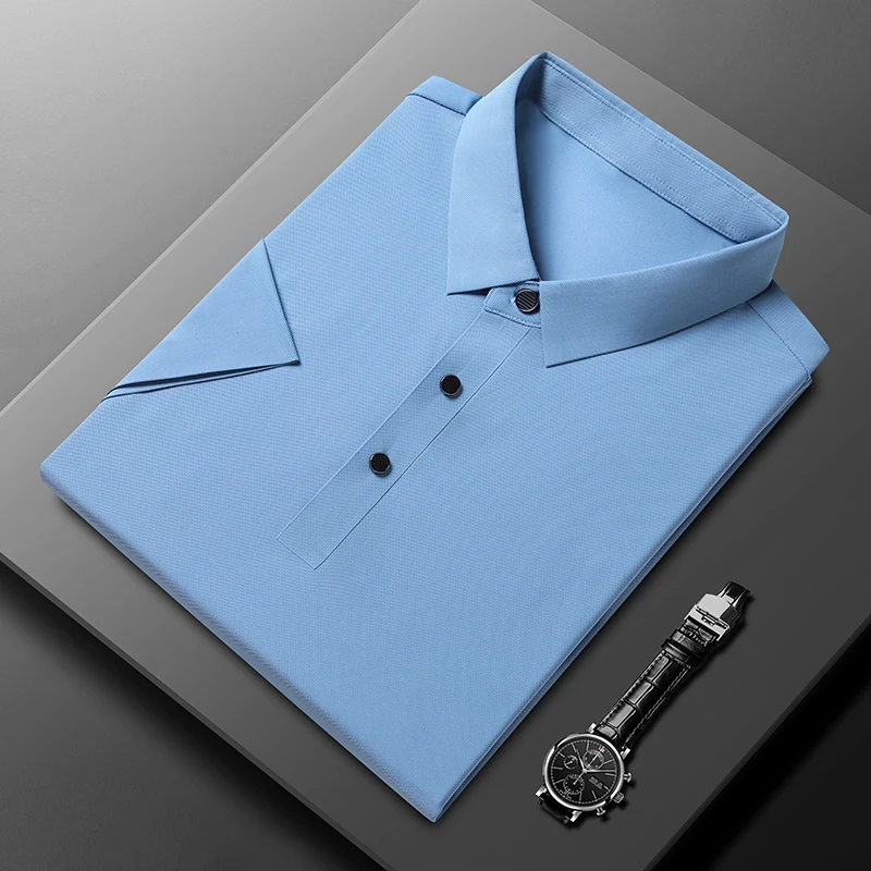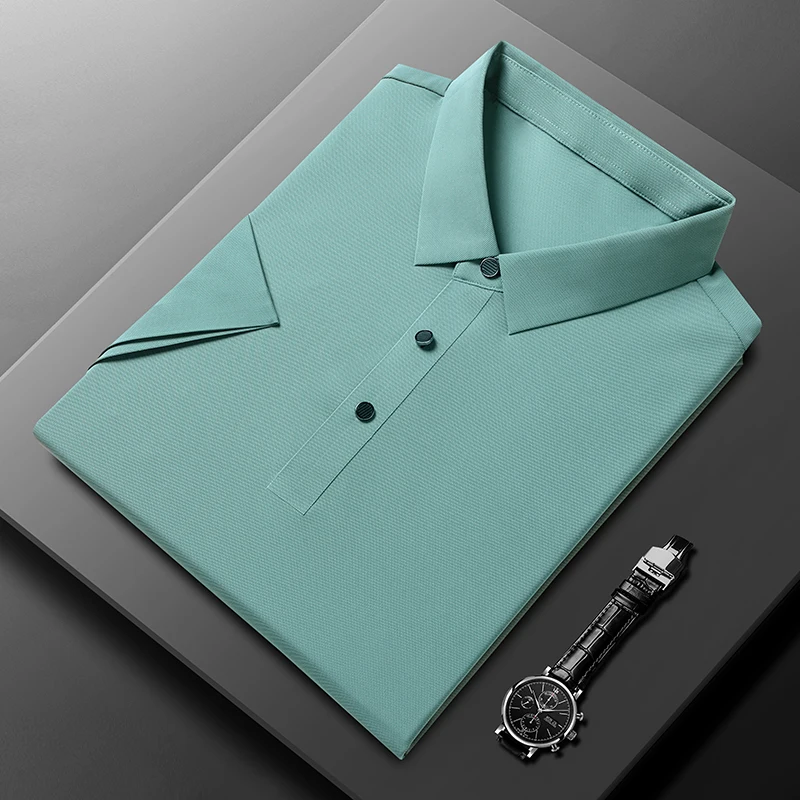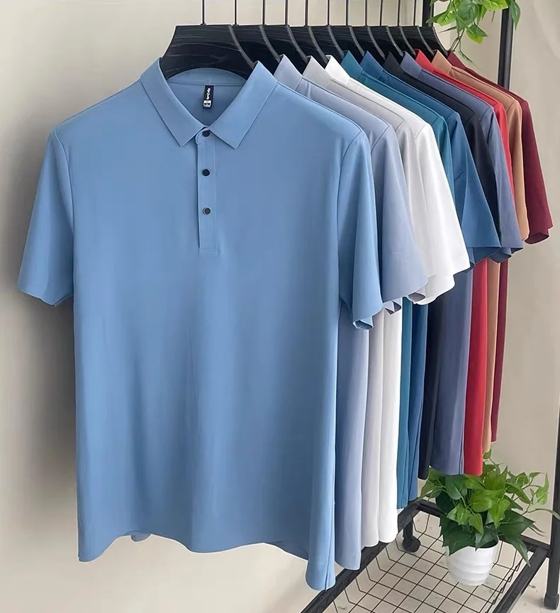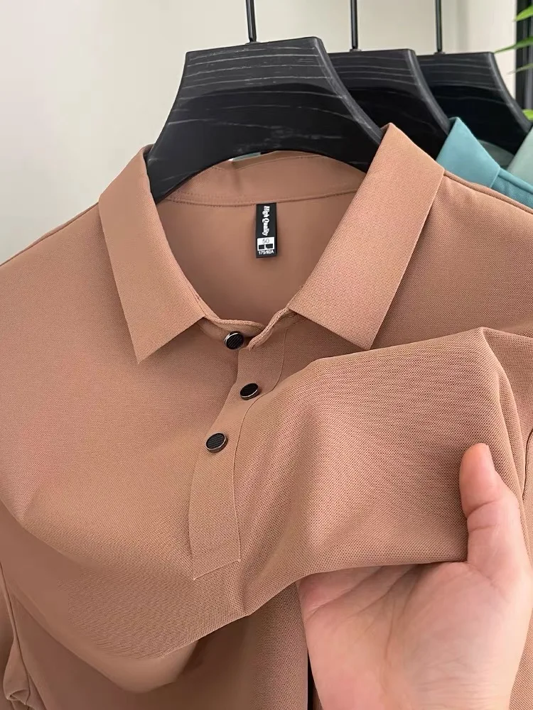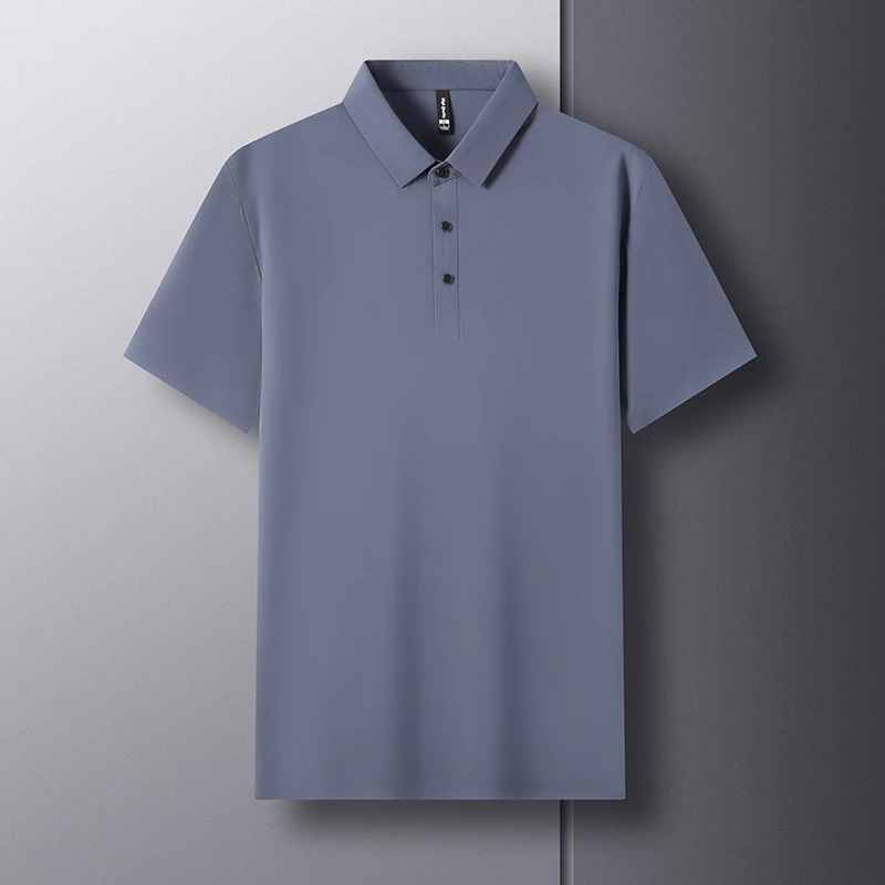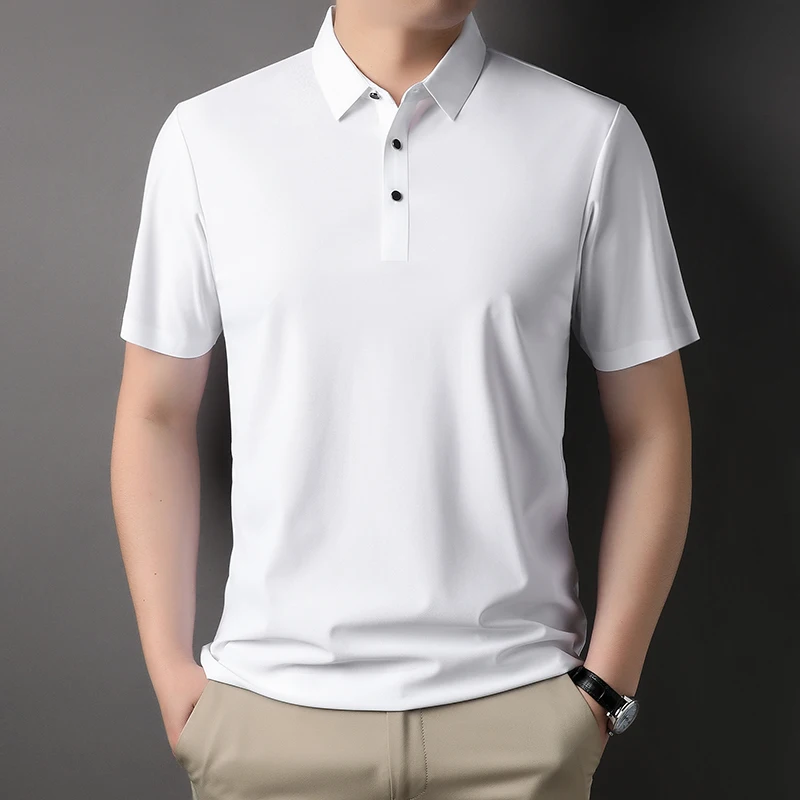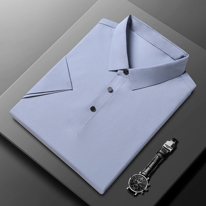 High end fashionable men's short sleeved summer new ice silk comfortable breathable polo shirt, high-quality casual T-shirt top