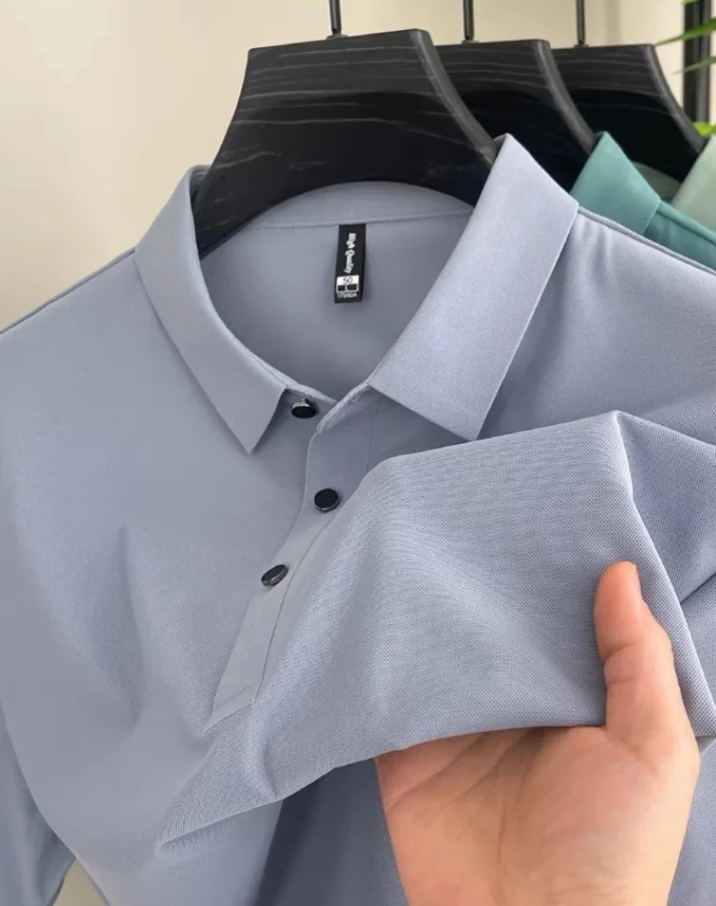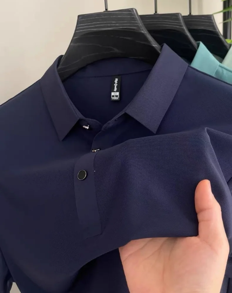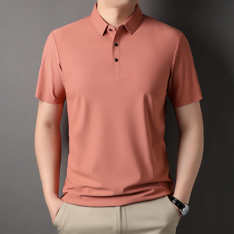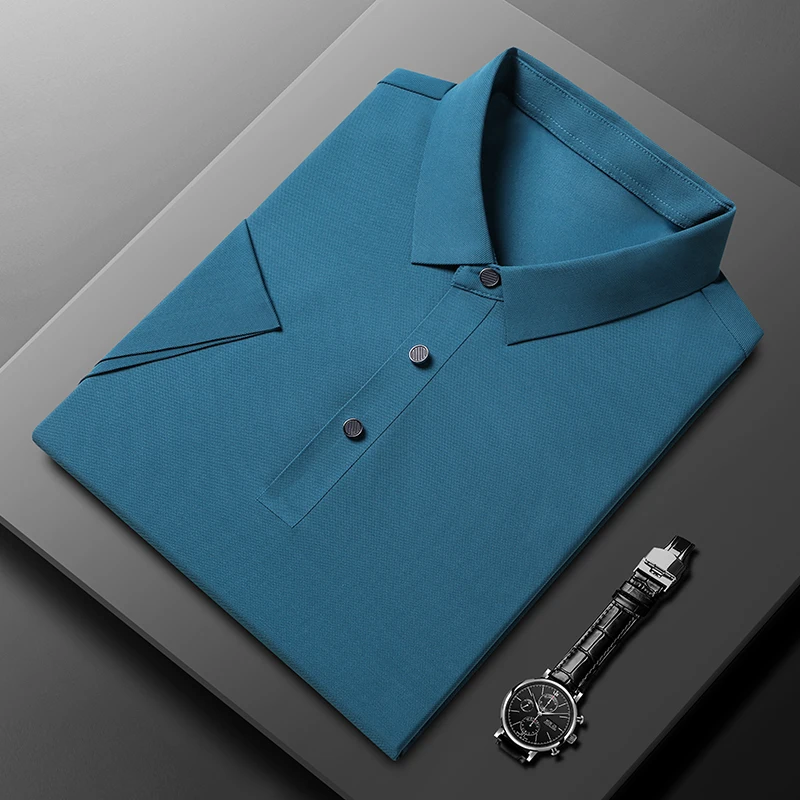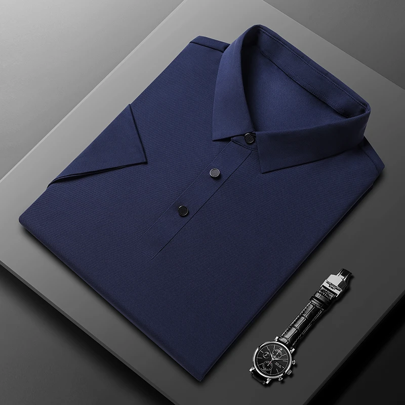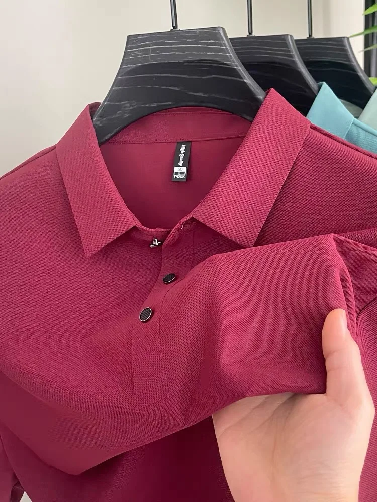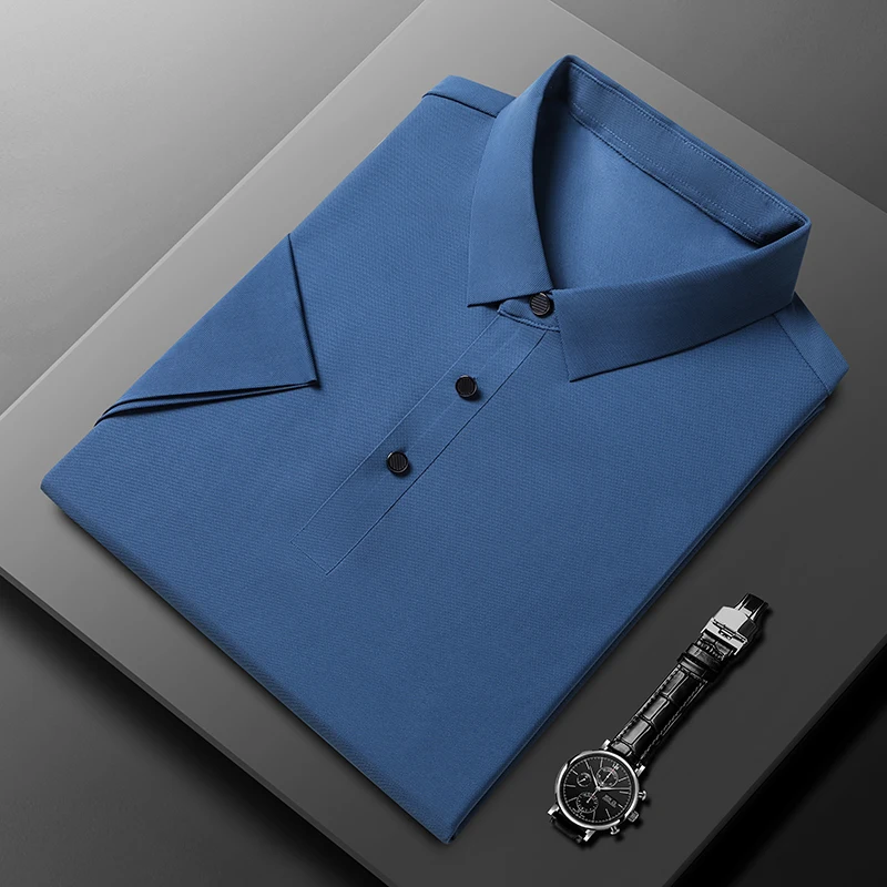 High end fashionable men's short sleeved summer new ice silk comfortable breathable polo shirt, high-quality casual T-shirt top